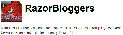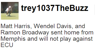 Reports are coming out that three players have been suspended from the Liberty Bowl for missing curfew last night.