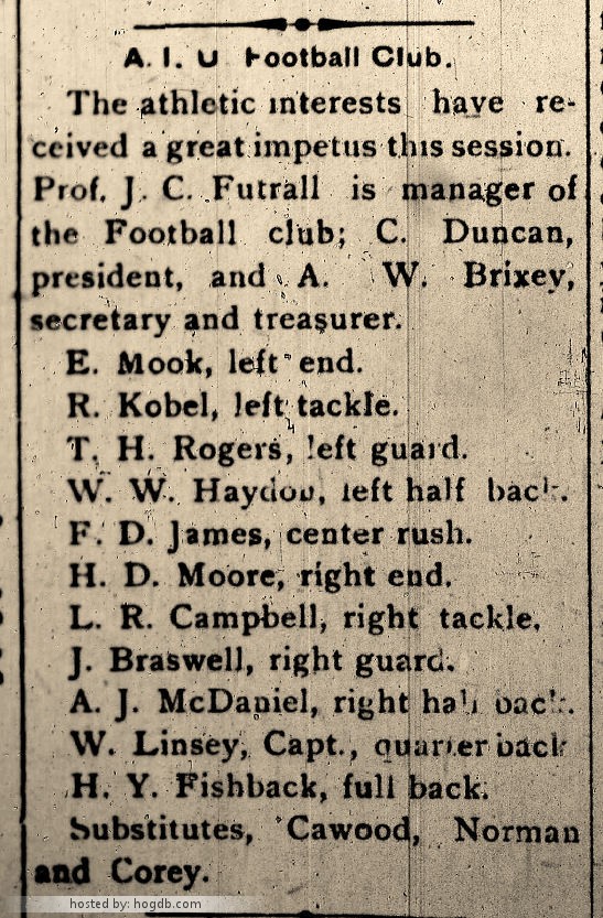 The 1894 roster as published in the November 20, 1894 “Arkansas Sentinel” of Fayetteville, AR.